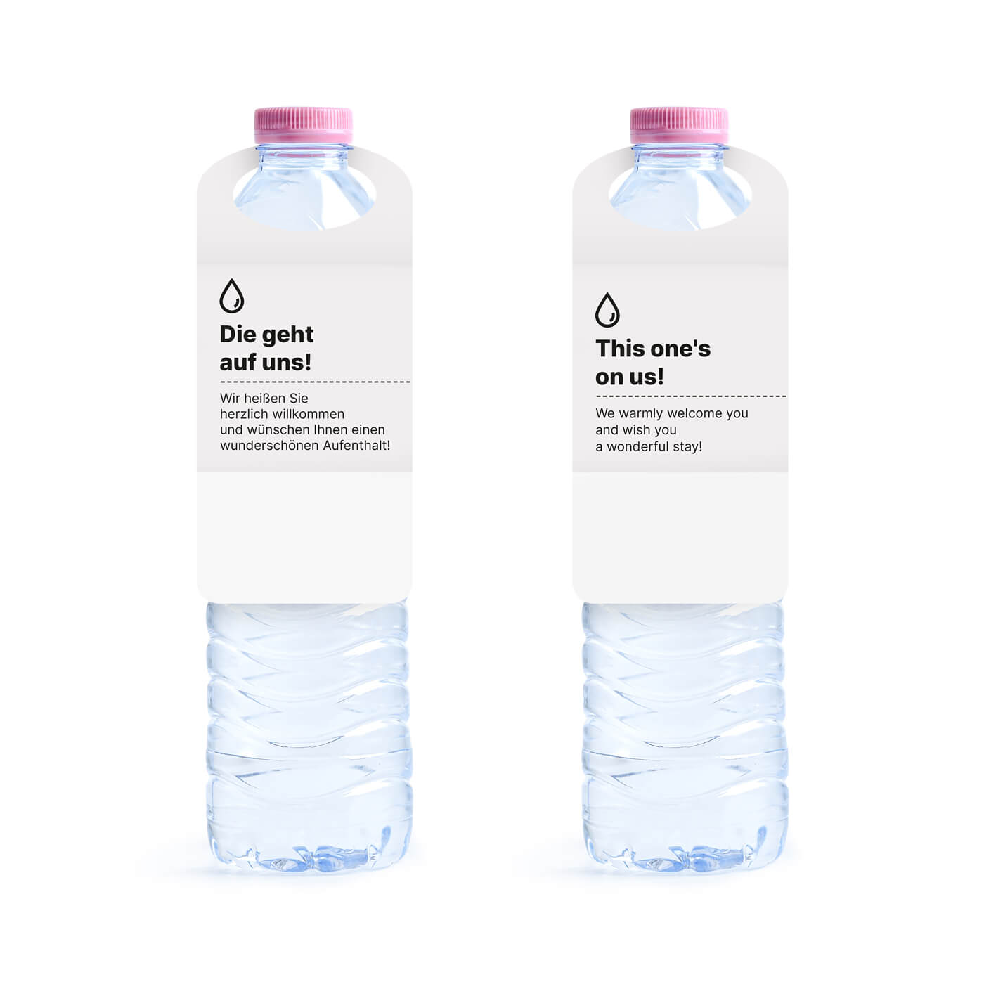Der Flaschenanhänger ist flexibel einsetzbar und eignet sich für alle gängigen Flaschengrößen – egal ob Wasserflasche, Saft oder Wein. Damit ist der Flaschenanhänger Willkommensgetränk Hotel ideal für jeden Anlass: vom klassischen Zimmer-Willkommensgruß bis hin zu Veranstaltungen, Tagungen oder exklusiven Gäste-Events. Die einfache Handhabung spart Zeit und sorgt dennoch für maximale Wirkung.